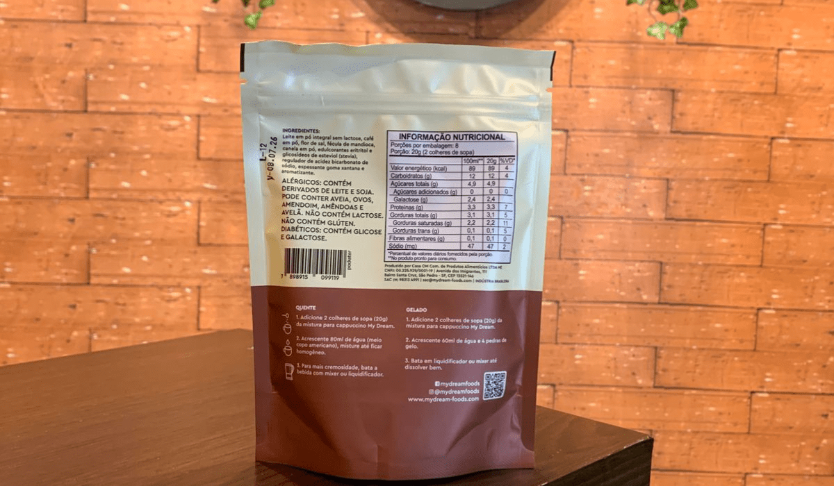 Produto sem Glúten, sem lactose e adoçado com açúcar de maçã ou stévia.